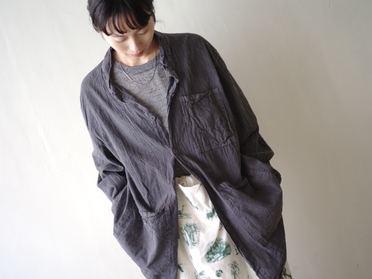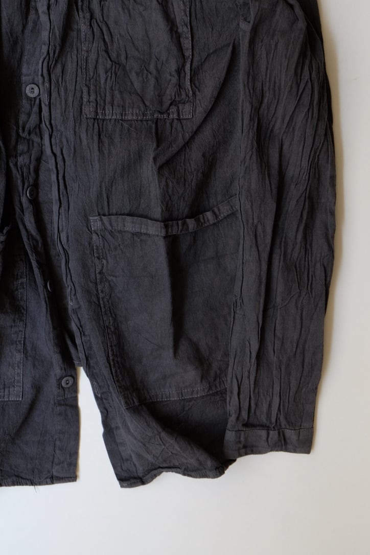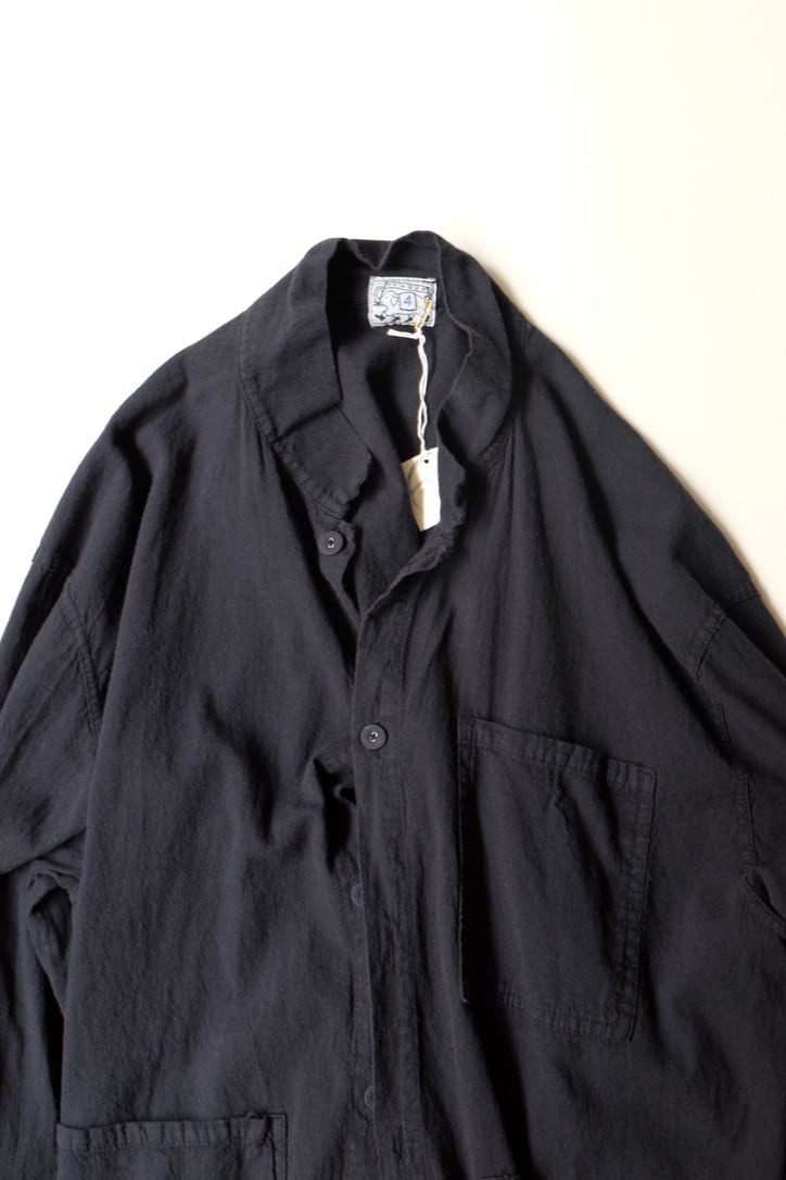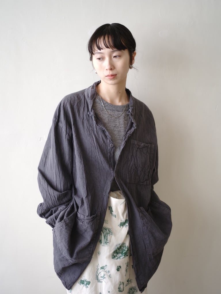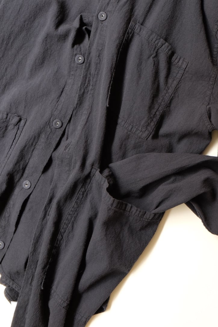 この収縮と質感の変化は通常、フランネルの仕上げ⼯程で発⽣しますが、これらのシャツの場合は⾐服⾃体で発⽣し、パネルが⼀緒になって、各部分の合計以上のものを作り出します。